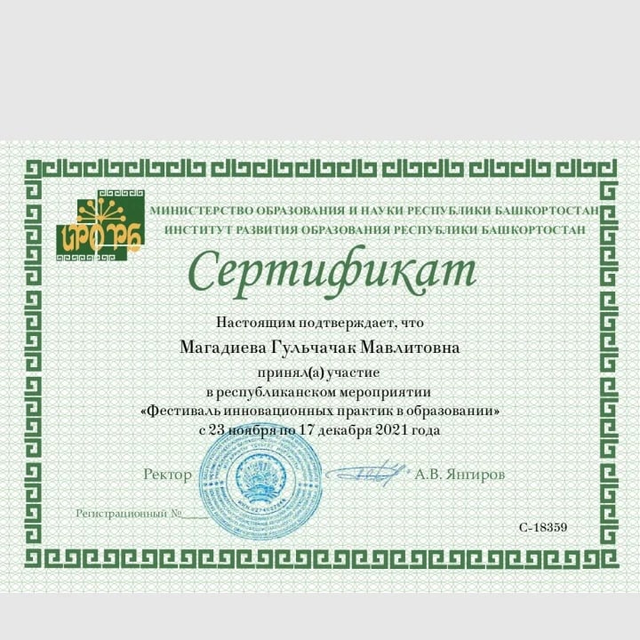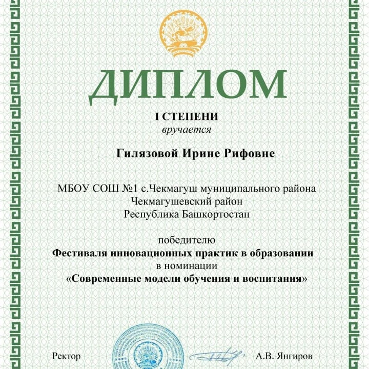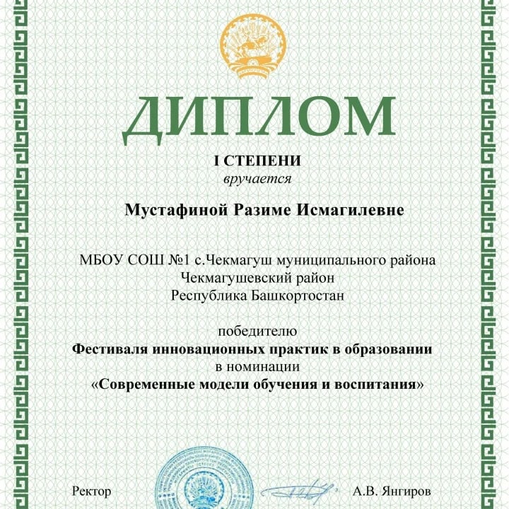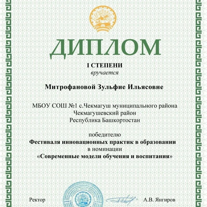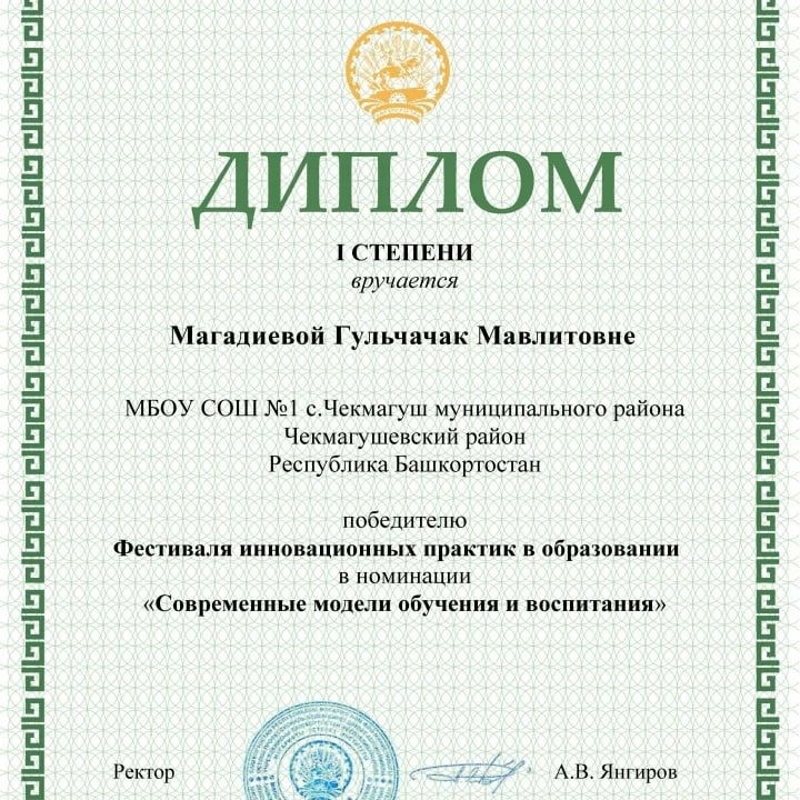 С 23 ноября по 17 декабря 2021 года команда учителей начальных классов МБОУ СОШ №1 с.Чекмагуш приняли участие в республиканском мероприятии «Фестиваль инновационных практик в образовании» организованное Институтом развития образования Республики Башкортостан и Министерством Образования Республики Башкортостан. По результатам конкурса Гилязова Ирина Рифовна, Мустафина Разима Исмагилевна, Митрофанова Зульфия Ильясовна, Магадиева Гульчачак Мавлитовна, Ганеева Алена Викторовна стали победителями в номинации «Современные модели обучения и воспитания». Сегодня директор школы Бикмухаметов Алмаз Рамилевич в торжественной обстановке вручил победителям дипломы 1 степени. Администрация школы выражает огромную благодарность учителям начальных классов. Поздравляем!!! Желаем творческих побед!!!