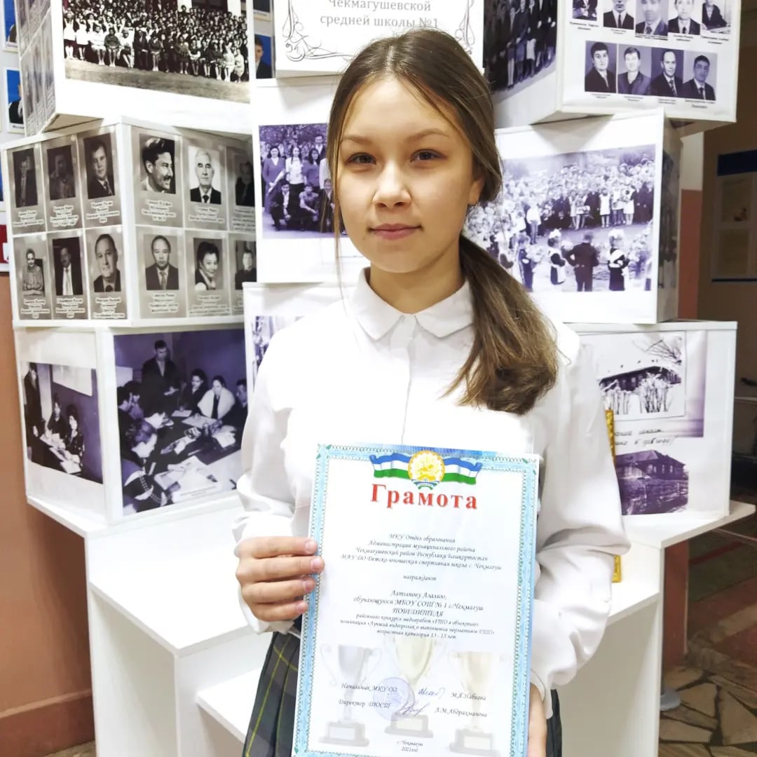 Латыпова Азалия - ученица 8б класса МБОУ СОШ N1 села Чекмагуш, ПОБЕДИТЕЛЬ районного конкурса медиаработ "ГТО в объективе" в номинации "Лучший видеоролик о выполнении нормативов ГТО".