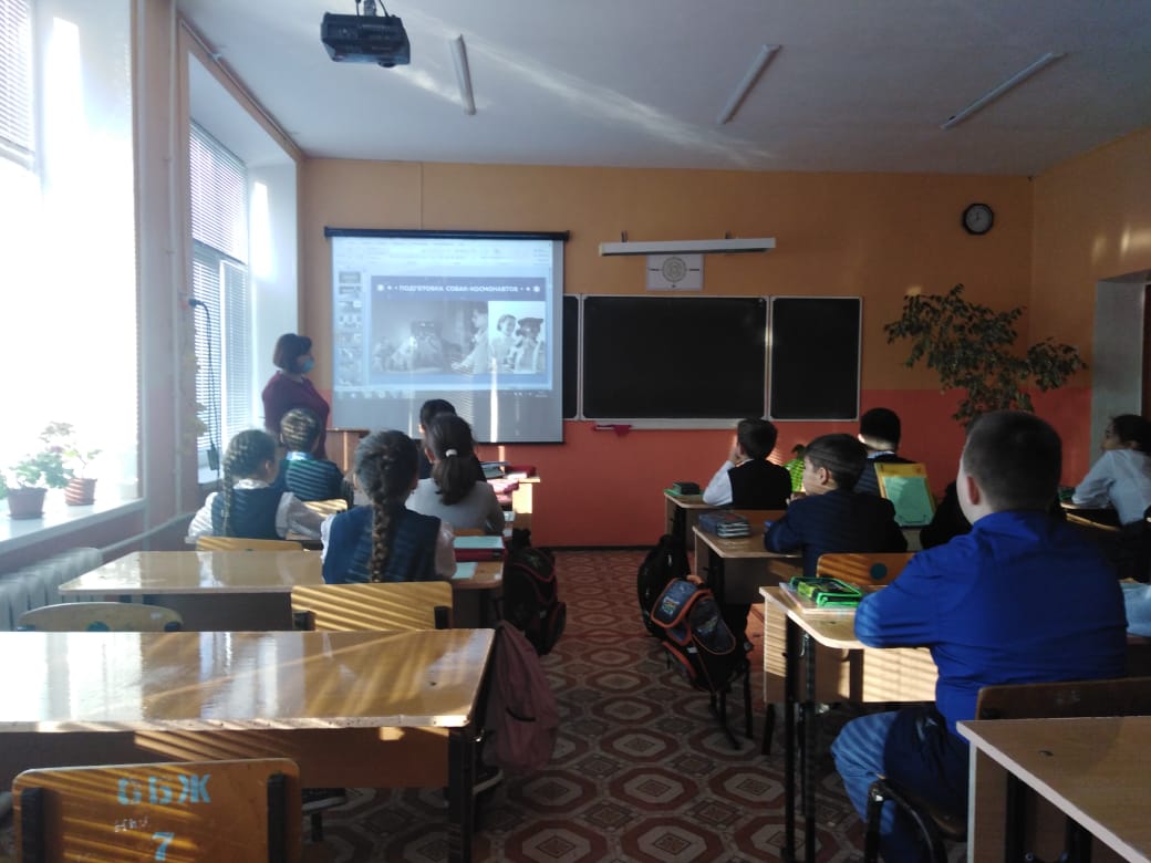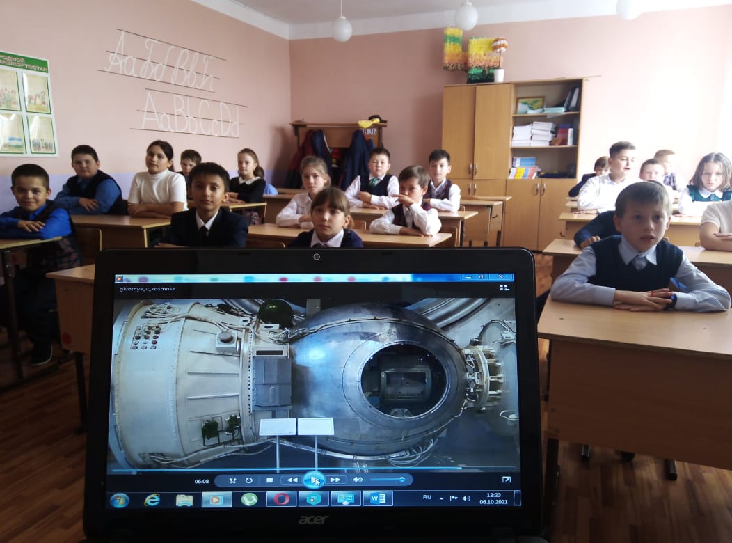 В рамках проведения Всероссийского урока астрономии «Космический зоопарк, или Животные в космосе» классные руководители (Ильясова А.Г и Ганеева А.В.) с учащимися 4 г и 4 б, провели урок с использованием методических материалов. Целью данного урока было ознакомить учащихся с животными - космонавтами, которые проложили дорогу в космос. Урок прошел в интеллектуальной форме с использованием видеоролика.