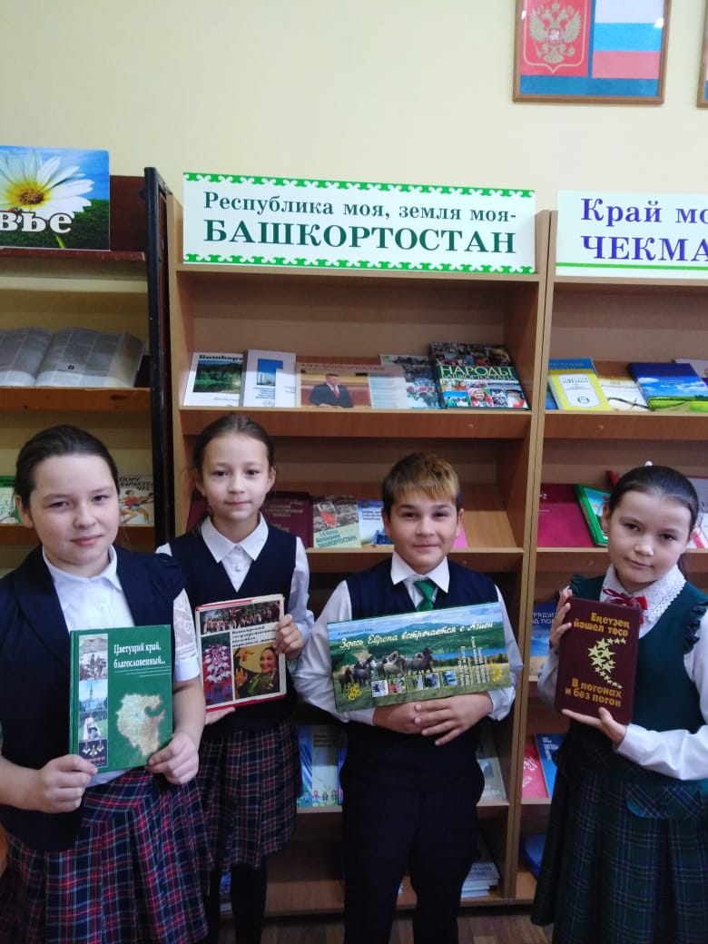 С целью формирования у учащихся целостного представления о родном крае, воспитания познавательного интереса, любви к своей малой Родине в преддверии Дня Республики в школьной библиотеке провели мероприятие «Мой край-мое Отечество». Мероприятие началось с прослушивания гимна. Библиотекарь рассказала о символах Республики Башкортостан, затем учащиеся послушали увлекательный рассказ об истории становления республики, традициях и обычаях, культурных ценностях, о богатстве природы родного края. Также участники мероприятия ознакомились с книжной выставкой «Республика моя, земля моя - Башкортостан!».